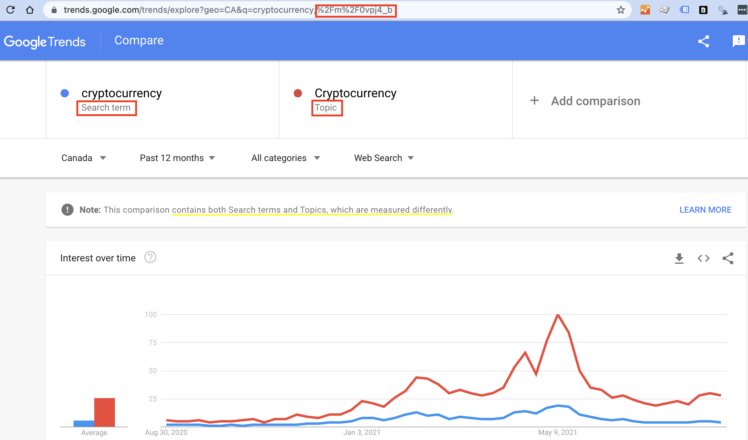 - you need to go to Google Trends to check if a topic is available (it may also be called something different than ‘topic’, like ‘currency’ for the term ‘Bitcoin’).